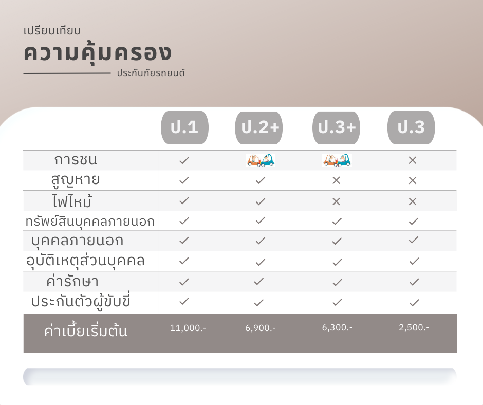 Premiums start from approximately 2,000 THB, depending on vehicle and conditions